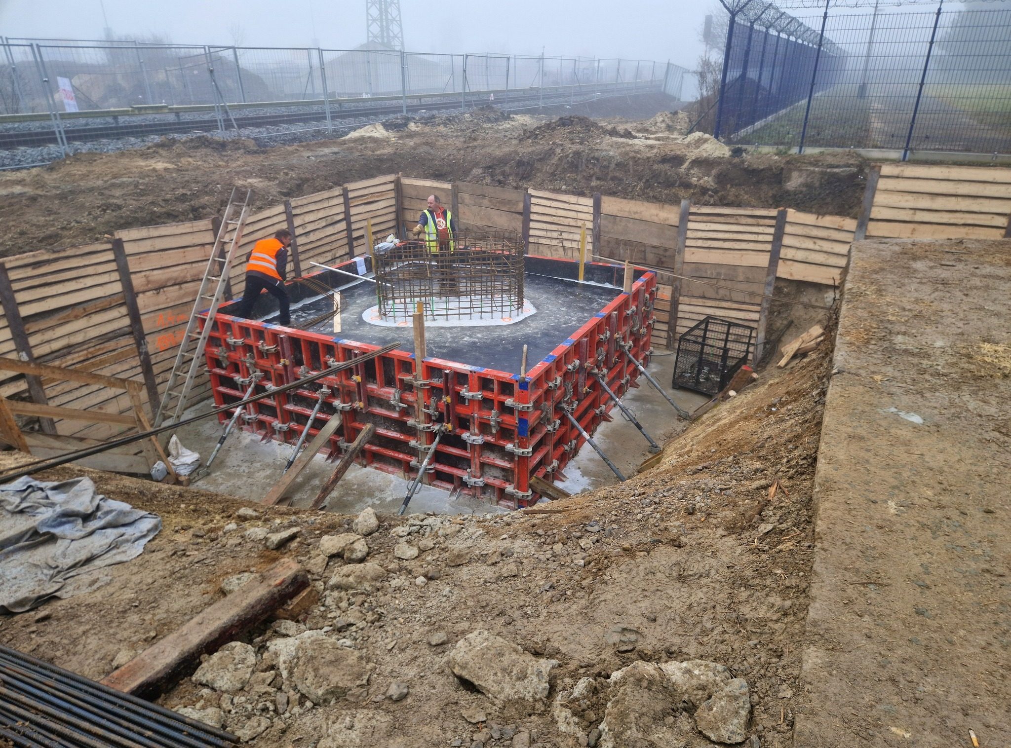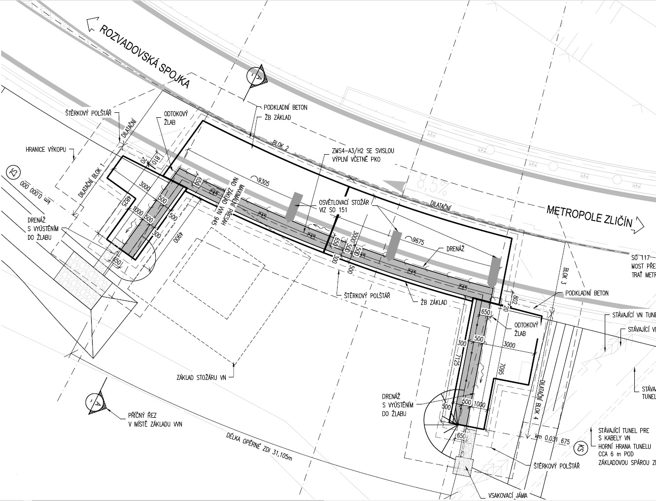 Následovat bude přemostění zkušební tratě metra. Půjde o dvoupolovou nosnou konstrukci z předpjatého betonu. Most už je v současnosti hlubinně založen na velkoprůměrových pilotách. Celkem bude mít délku 57 m a šířku 8,6 m s rozšířením na severním konci na 16 metrů.