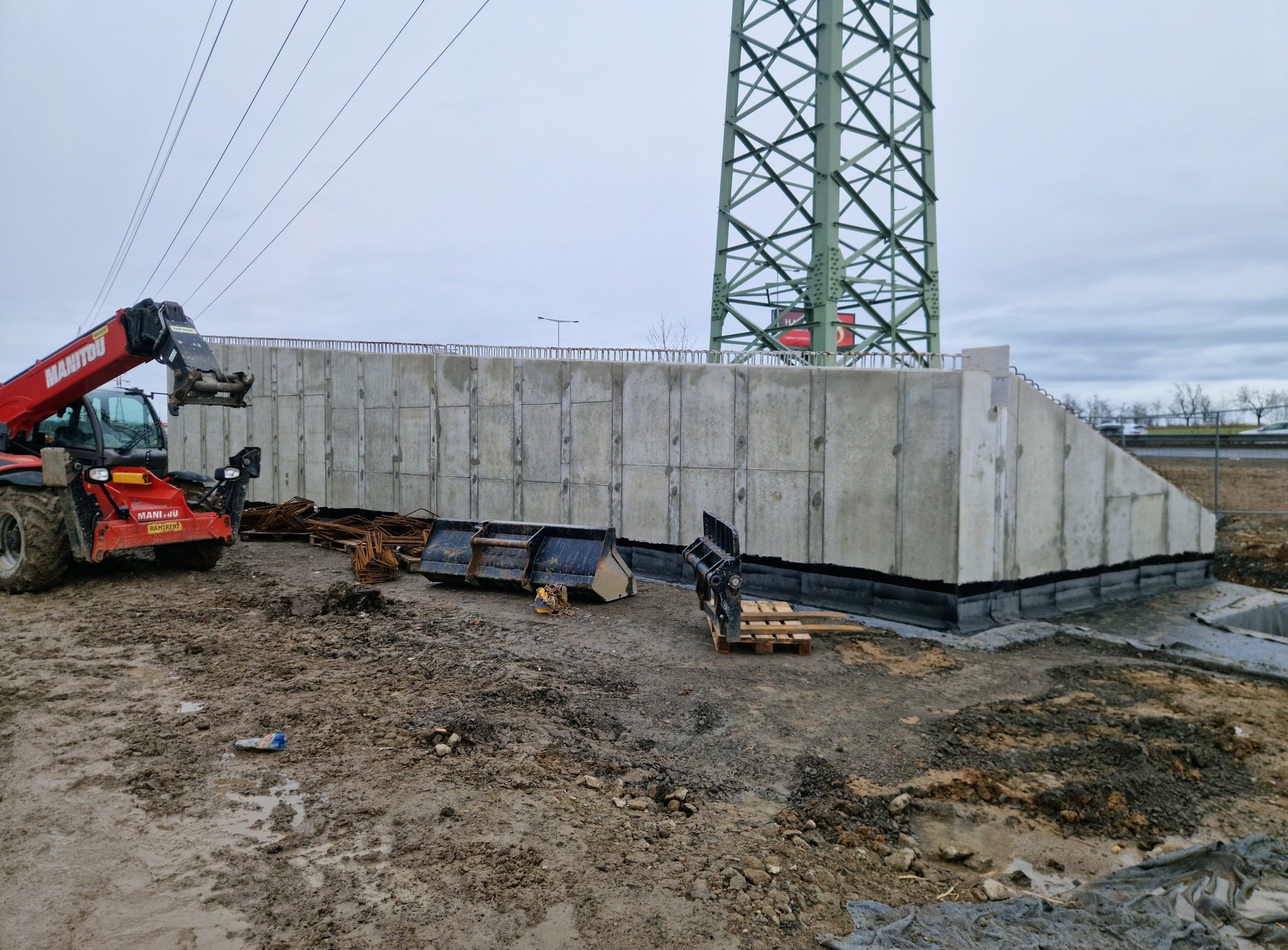 Dalším stavebním objektem je opěrná zeď, která chrání stožár vysokého napětí v místě násypu silničního tělesa. Stavba dále zahrnuje terénní úpravy, odvodnění a elektrické vedení pro osvětlení a informační systémy.