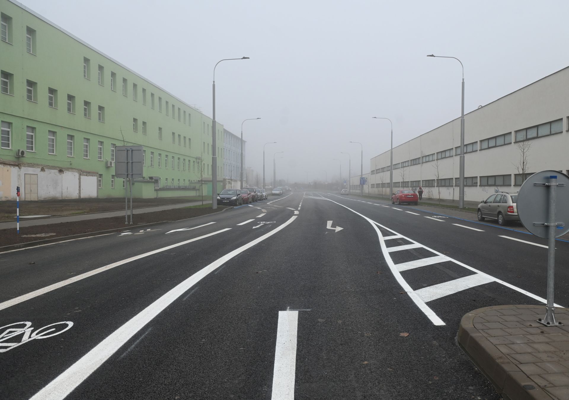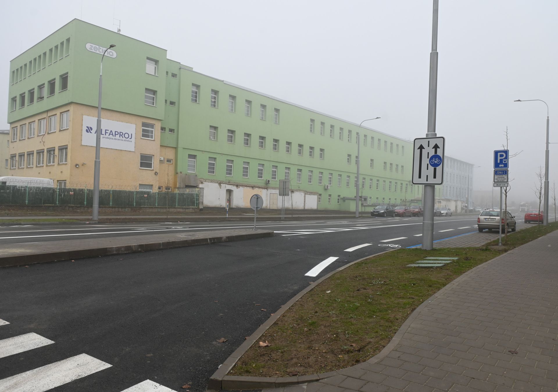 V rozšířené ulici vznikly tři jízdní pruhy, obousměrné jízdní pruhy pro cyklisty, parkovací zálivy a chodníky.
