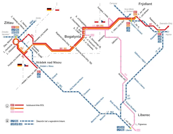 Liberecký kraj ve spolupráci s polskými a německými objednateli zavedl novou autobusovou linku 692. Dosud na této trase jezdí jen víkendová linka 691, od začátku roku se možnosti spojení výrazně rozšířily. Linka nabízí v pracovní dny 7 párů spojů denně. Jízdní řád je zde, dopravu zajišťuje ČSAD Liberec.