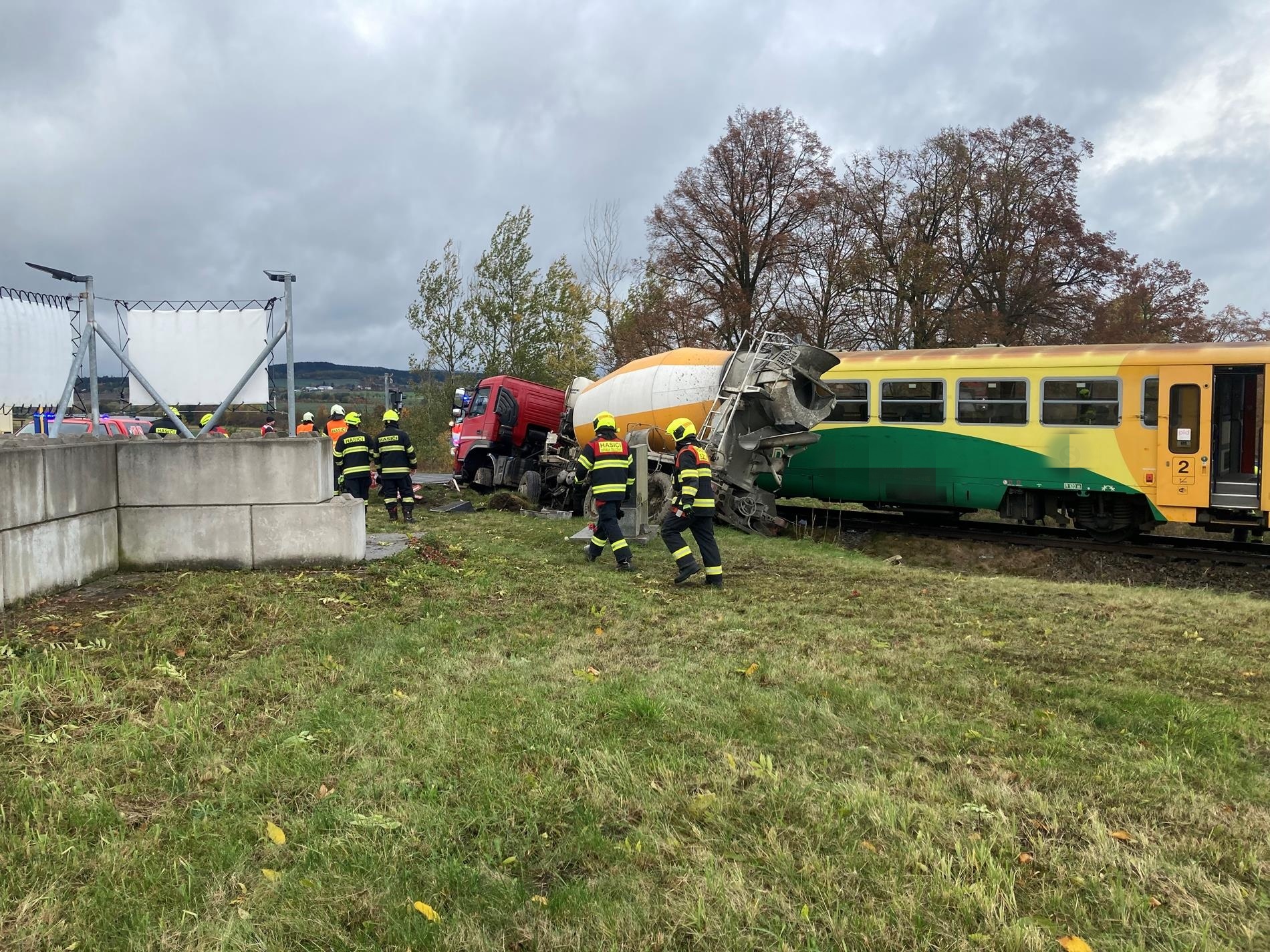 V Hudčicích na Příbramsku vykolejila Regionova, na přejezdu se střetnula s míchačkou