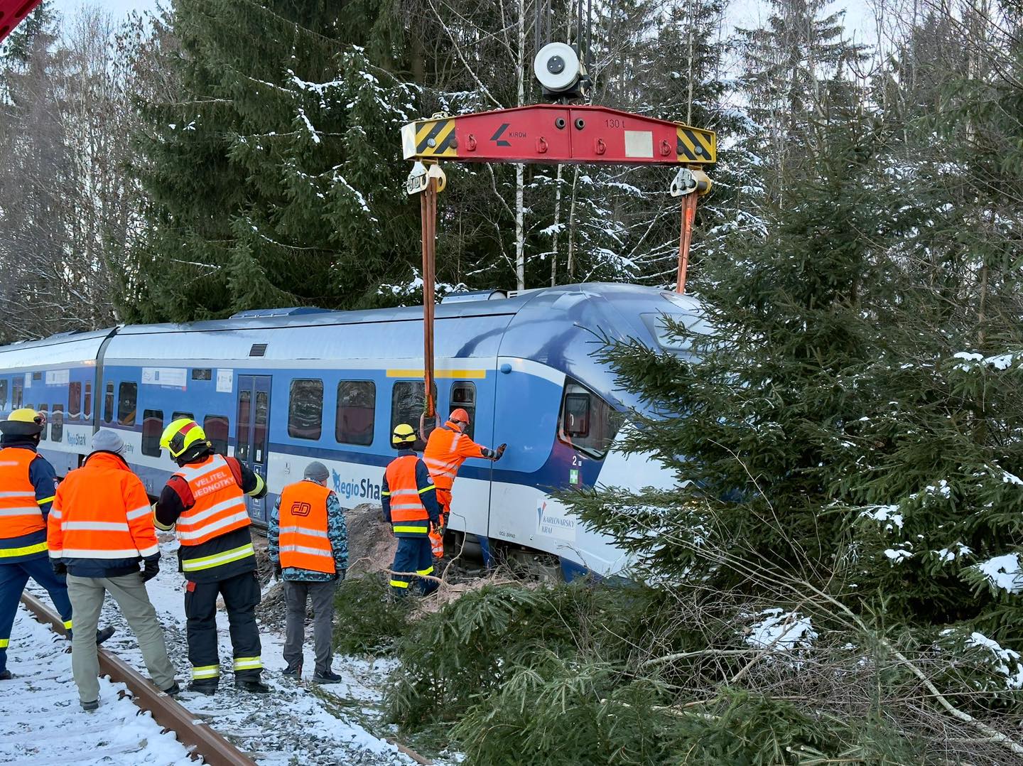 V sobotu ráno došlo na přeshraniční železniční trati Karlovy Vary dolní n. – Johanngeorgenstadt, v úseku Johanngeorgenstadt – Potůčky, k vykolejení osobního vlaku Českých drah (ČD). Strojvedoucí i cestující motorové jednotky 844 RegioShark vyvázli bez zranění.