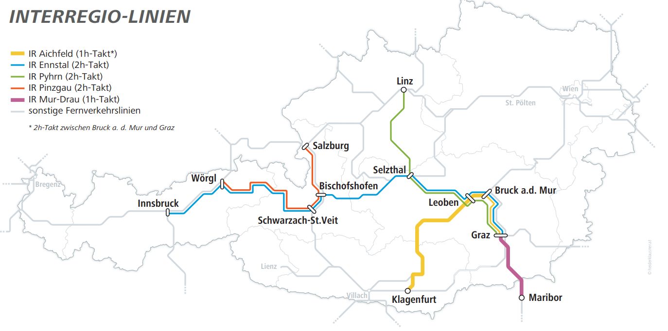 Jednou z výrazných změn v rakouském jízdním řádu bude od prosince zavedení nové kategorie vlaků Interregio (IR). Nová síť celkem pěti linek vznikne především díky spuštění provozu na takzvané Koralmské dráze, jejíž součástí je i nejdelší rakouský tunel. V řadě případů dojde k výraznému navýšení počtu spojů mezi některými regiony.