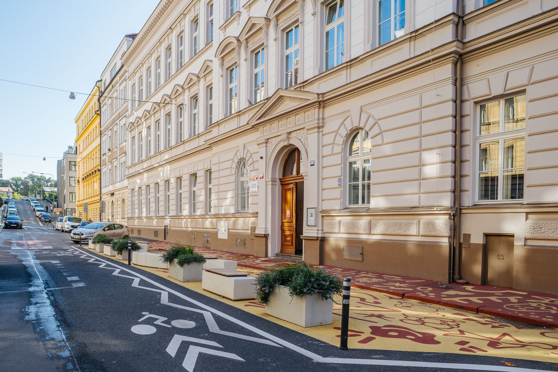Před Základní školou Grafická na pražském Smíchově vznikla plocha s barevným „asfalt artem“, která proměnila okolí v přehlednější a bezpečnější prostor. Výtvarné řešení zároveň upozorňuje řidiče, že se pohybují v zóně s výskytem dětí, a vede je k pomalejší jízdě.
