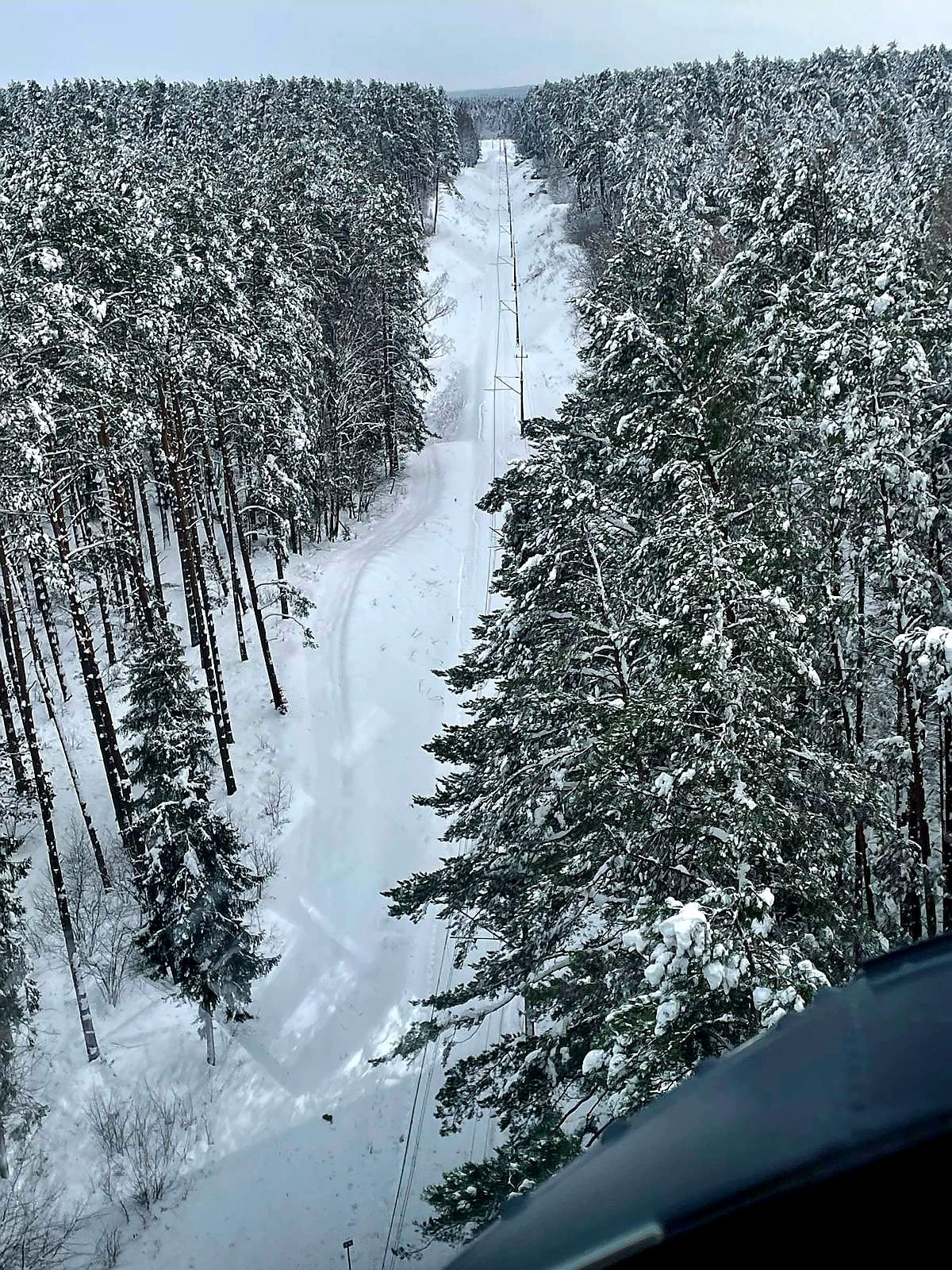 Z pokładu Black Hawka widać dokładnie, jak wirnik maszyny błyskawicznie strąca śnieg z drzew rosnących tuż przy torach na linii Działdowo – Olsztyn. 🚁⚠️ Taki śnieg to poważne zagrożenie, które obciąża drzewa, powoduje ich pochylanie, a… pic.twitter.com/SJpr80bEOX