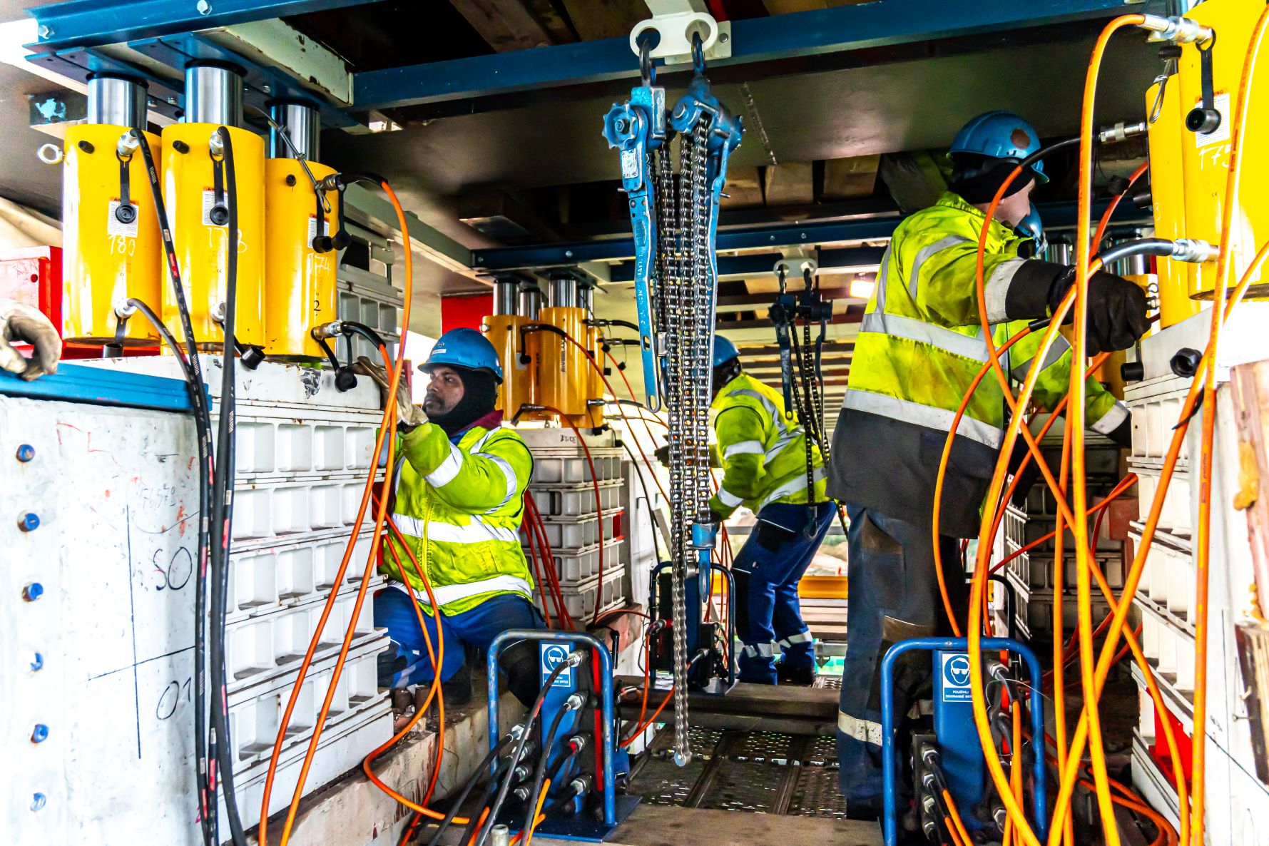 „Na běžných ložiskových pilířích by se jednalo o pro profesionály takřka rutinu, ale na tzv. náběhových pilířích bylo nutné spustit nosnou konstrukci o 1 m a následně srovnat výsuvem a teplotními pohyby zcela stochasticky vychýlené pilíře osu na osu s nosnou konstrukcí,” uvedl vedoucí celého projektu Marek Foglar.