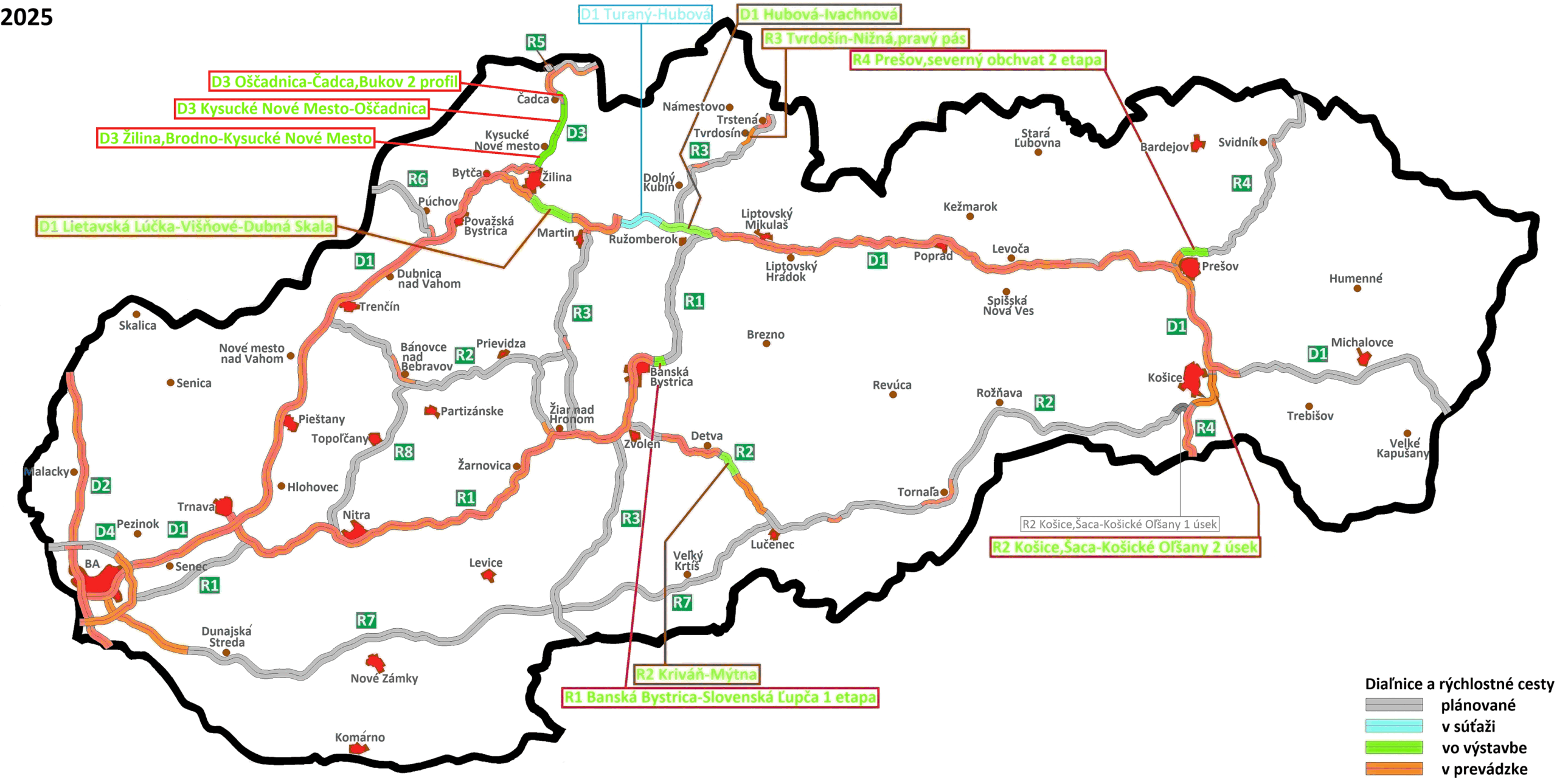Asi budoucí nejrychlejší cesta z Prahy do Tater. D11+D35+D1+D48+R68+D3+D1…