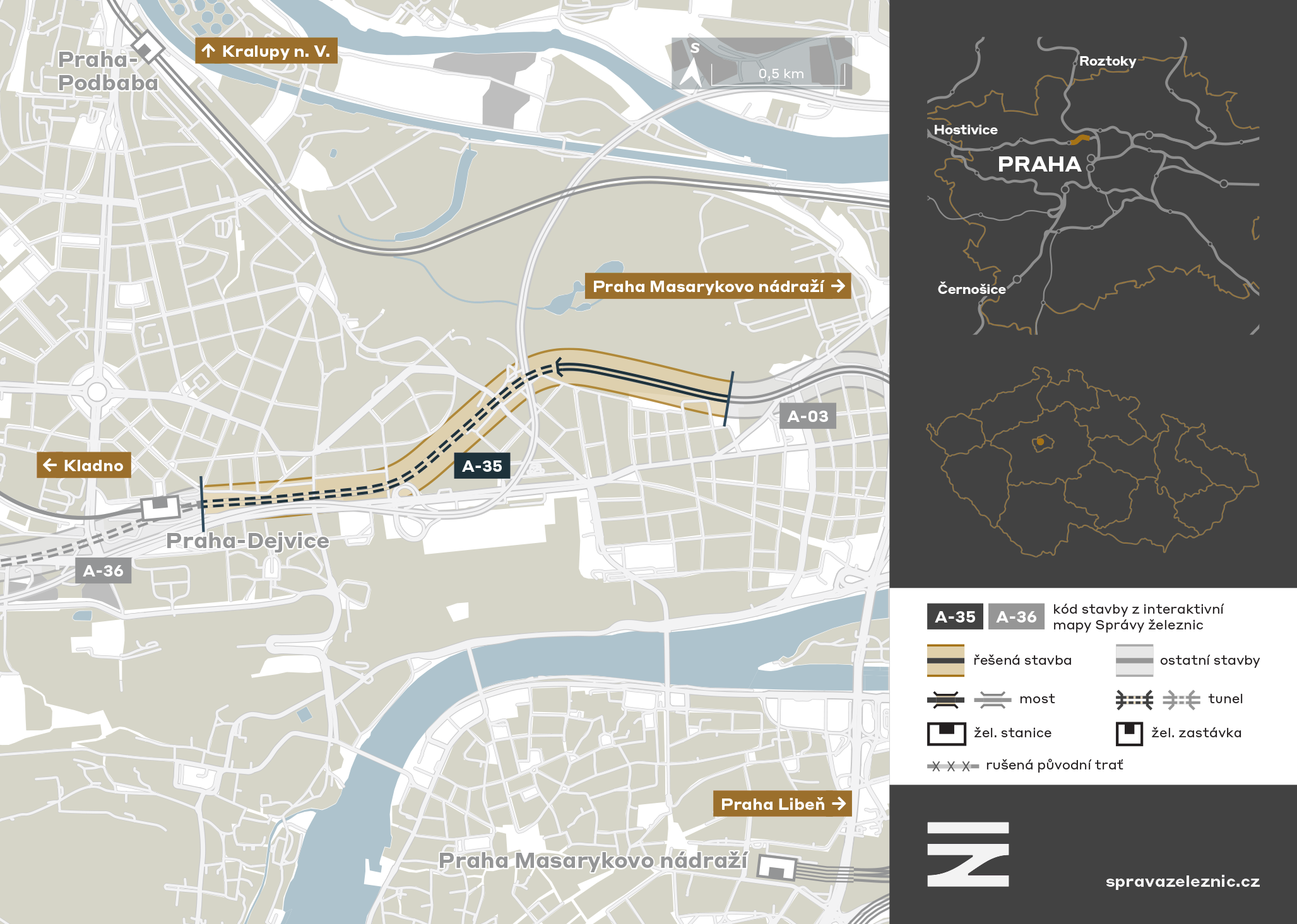 „Ve Stromovce zajedete pod zem a přes podzemní stanici v Dejvicích a ražené tunely pod Střešovicemi vyjedete až ve Veleslavíně,“ popsal Dlubal. Na úsek bude totiž navazovat tunel Dejvice – Veleslavín, pro který SŽ v pondělí získala souhlasné stanovisko EIA.